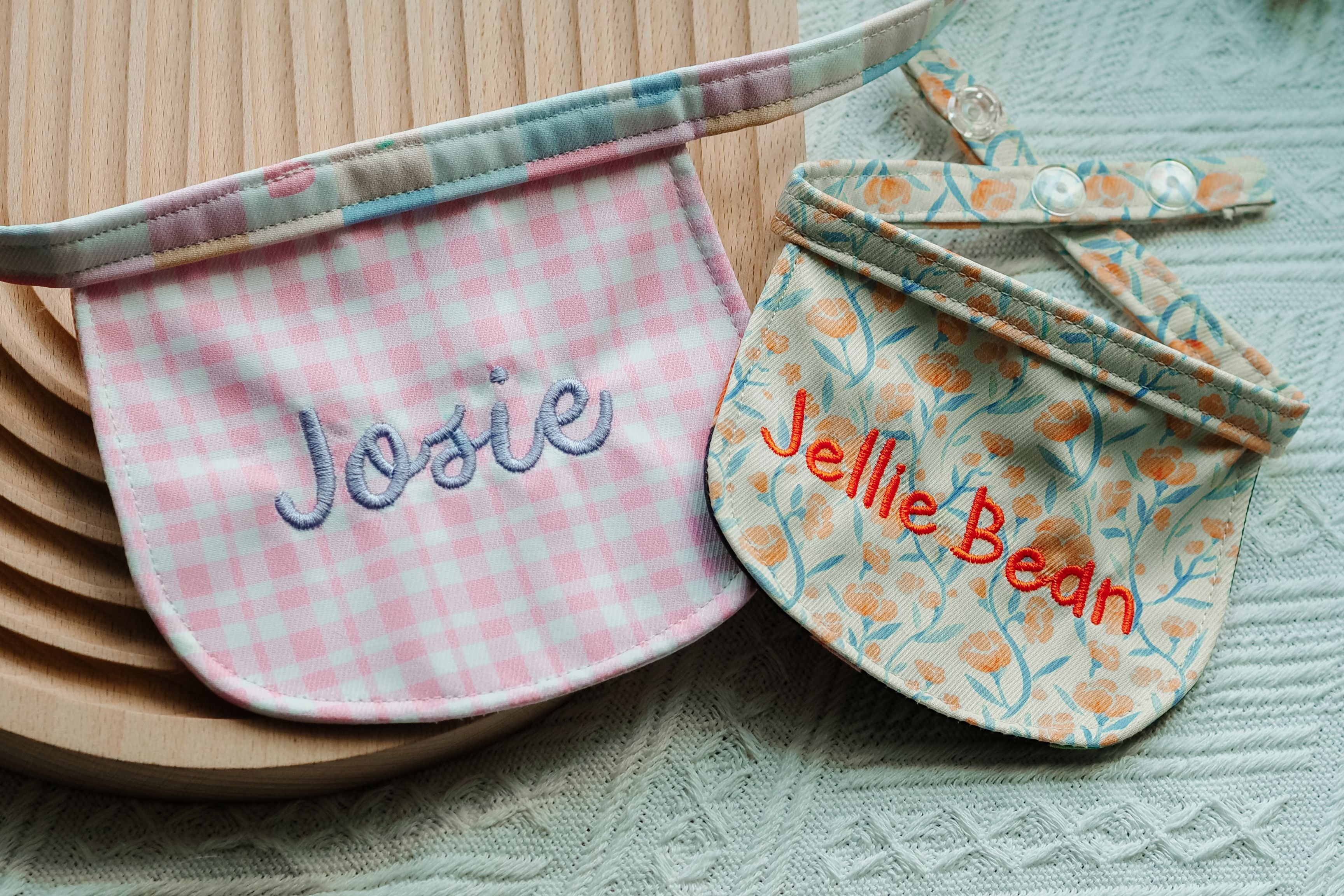 Select two prints and personalise your furbaby bandana with their name. You can even choose your own font & color!